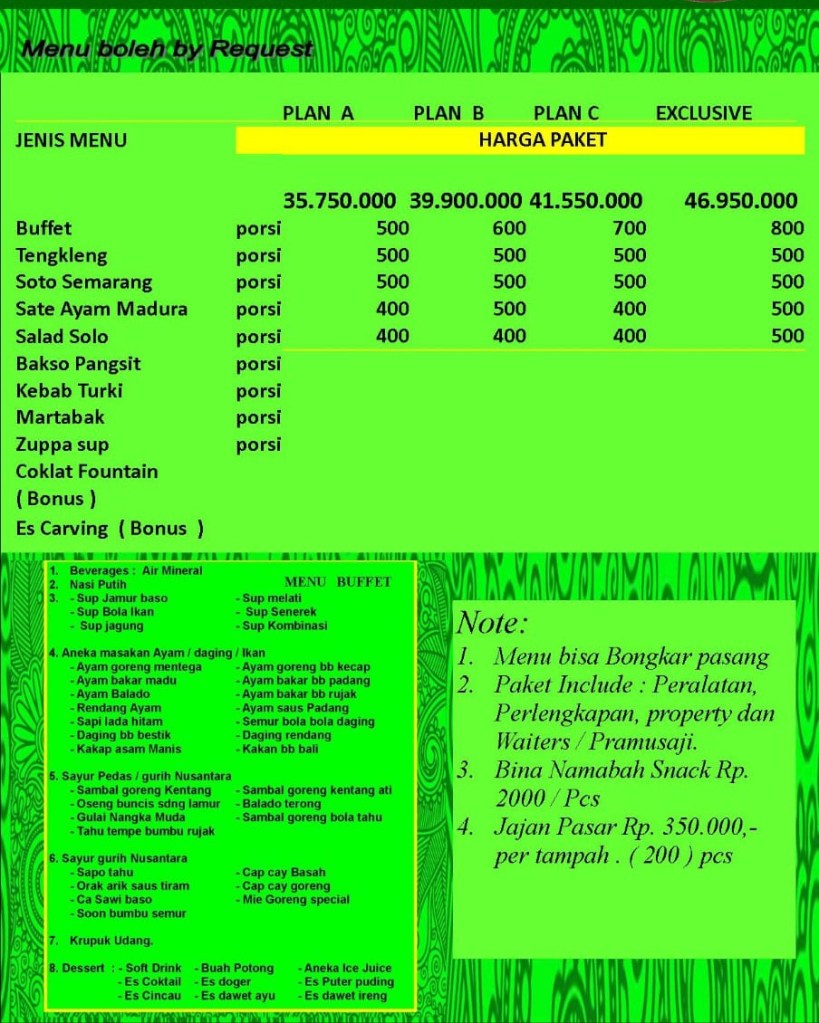Pesan Catering Pernikahan Murah di jogja. Mudah dan banyak promo setiap hari. Pesan Catering Catering murah dengan paket diskon terbaik di BINA SAKINAH SEMARANG. Mau Pesta atau Aqiqah? Bina SakinahYuk! Transaksi Aman dan Mudah. Berbagai Pilihan Paket, dengan Biaya terjangkau, Budged biSa Menyesuiakan.